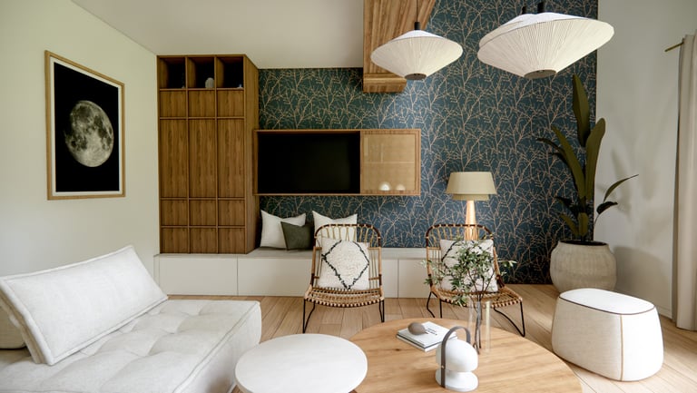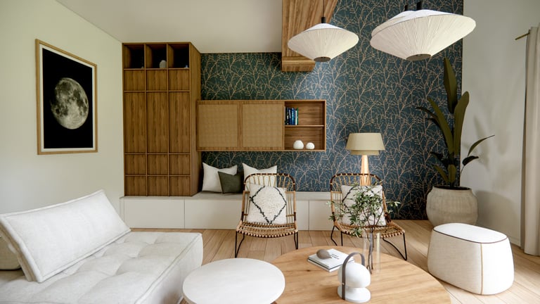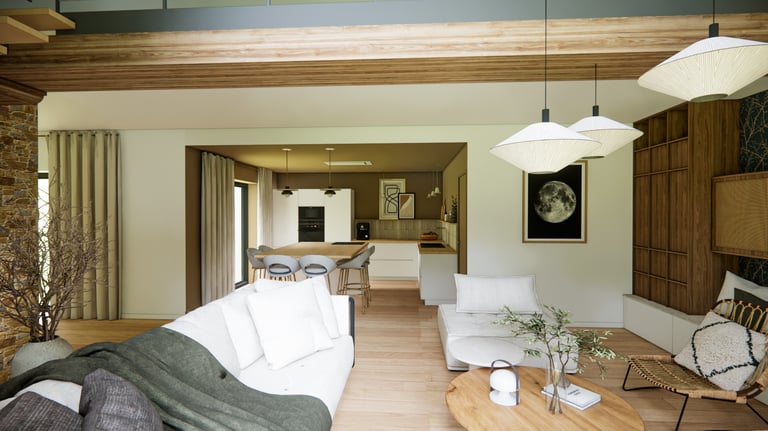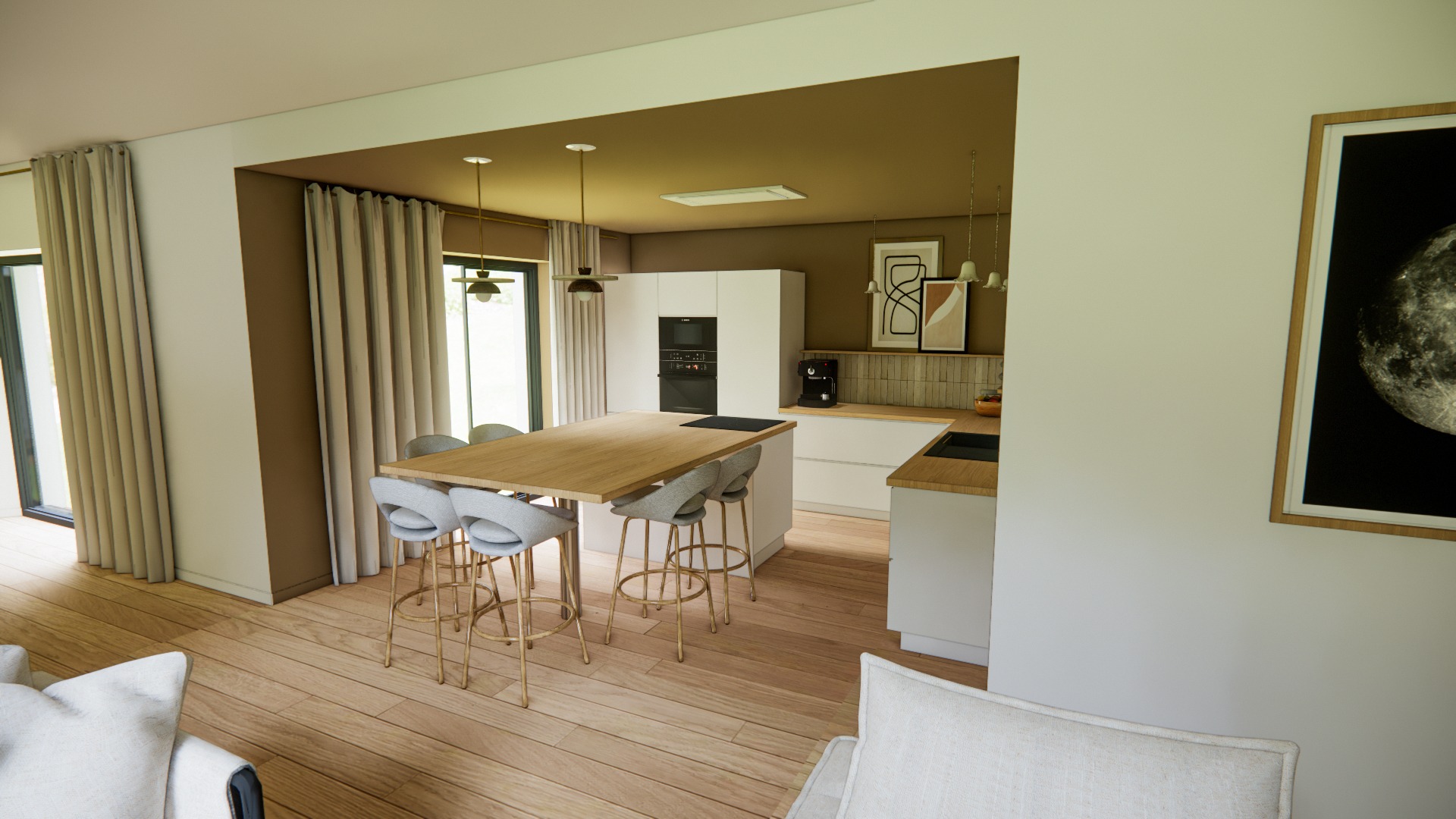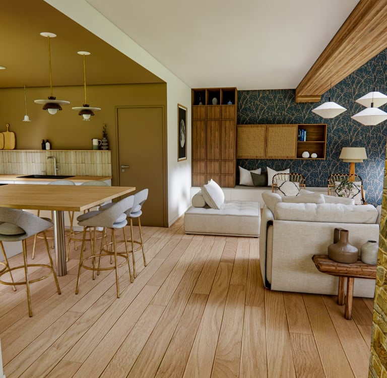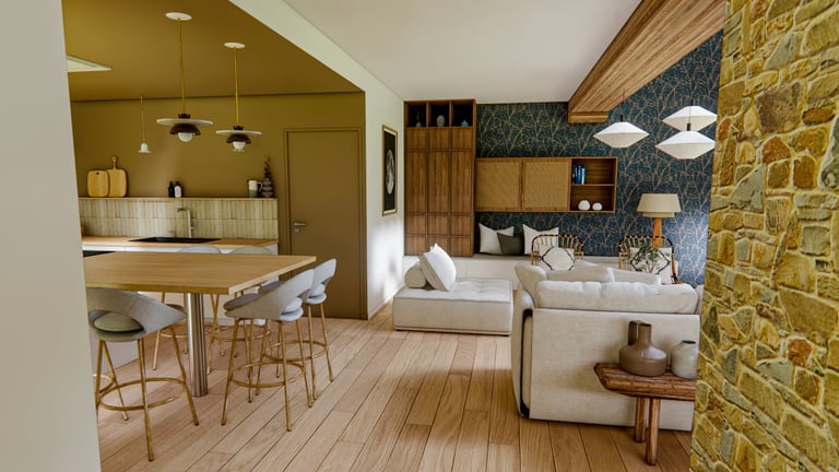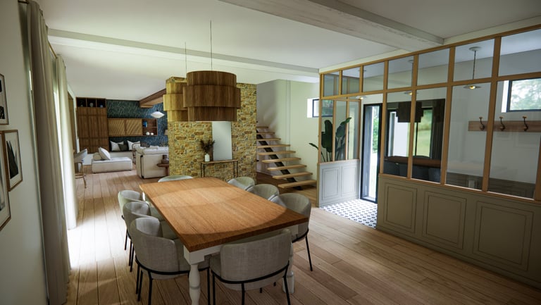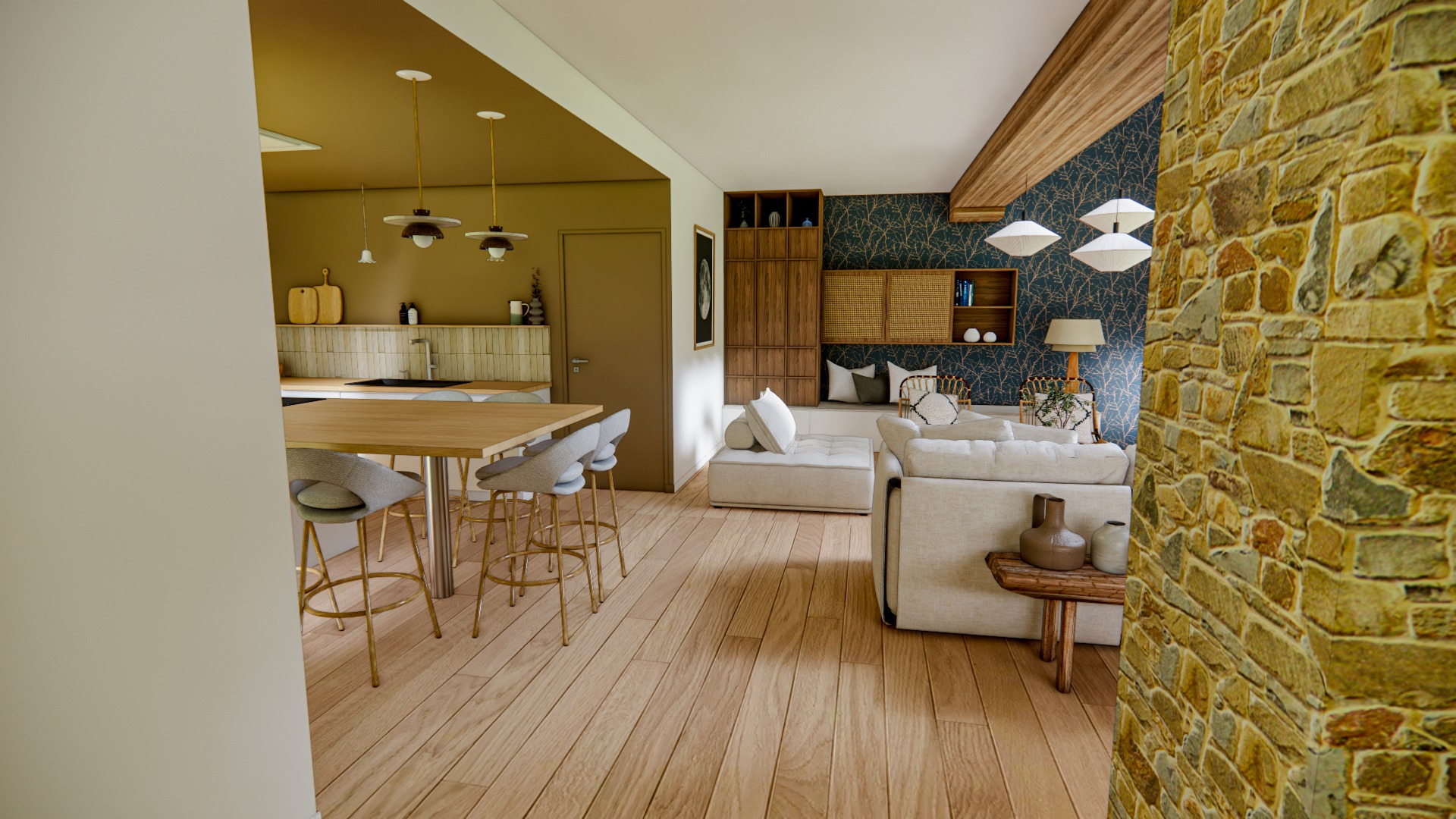 Découvrez mon projet d'agencement et de décoration intérieure sur mesure à la Domalain, avec des perspectives photoréalistes de qualité. Visualisez le futur intérieur grâce à mes services de design intérieur et aménagement intérieur.