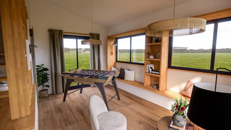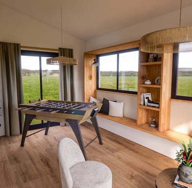 Une maison des années 90 revisitée dans un esprit de simplicité et de chaleur, où le bois brut structure une atmosphère de maison de campagne familiale.